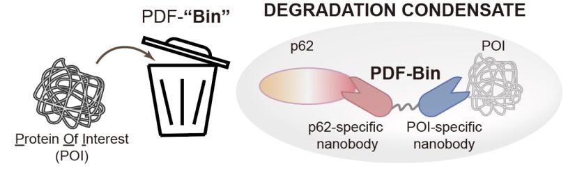[1] Jia, W., Li, W., Li, Z. et al. An all-in-one targeted protein degradation platform guided by degradation condensates-bridging bi-specific nanobodies. Cell Res (2024). https://doi.org/10.1038/s41422-024-00942-3