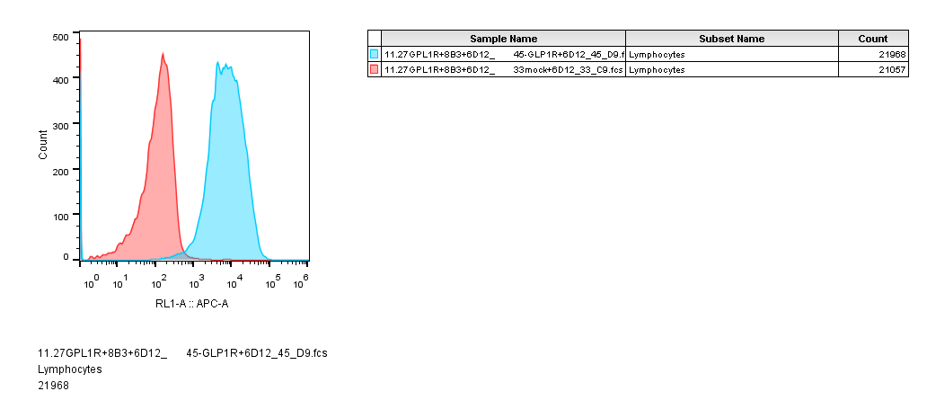 Detection of Target Binding of NBLST's Anti-GLP-1R Nanobody    FACS:Anti-GLP1R antibody (MPC240001) at 1/3000 dilution