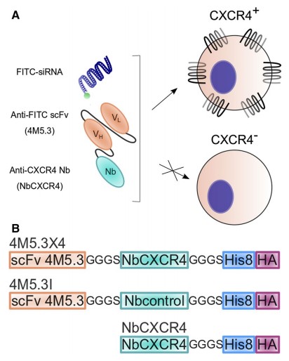 In 2019, an academic study included and published by Springer Switzerland Branch suggested that targeted delivery therapy targeting CXCR4 indeed has a good therapeutic effect on tumor diseases. However, the traditional forms based on cell ligands or antibodies still have significant obstacles in the treatment of non - tumor diseases (such as HIV infection). In this research project, the researchers used a chimeric protein (4M5.3X4) formed by fusing a nanobody targeting CXCR4 (NbCXCR4) with an anti - fluorescein (FITC) scFv fragment carrying siRNA. Benefiting from the small molecular size and stability of the nanobody, this chimeric protein can accurately and selectively deliver siRNA to CXCR4 - positive cells and release it there.