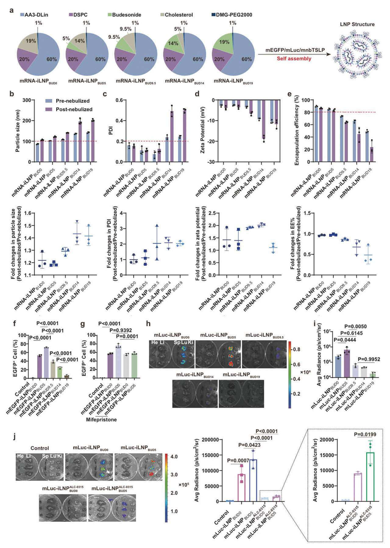 参考文献:Huang, Jia et al. “Budesonide-incorporated inhalable lipid nanoparticles for antiTSLP nanobody mRNA delivery to treat steroid-resistant asthma.” Nature communications vol. 16,1 6013. 1 Jul. 2025, doi:10.1038/s41467-025-61114-4
