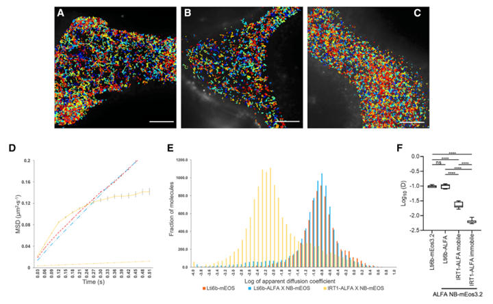 Figure 5: Super-Resolution Imaging of Lti6b-ALFA and IRT1-ALFA via sptPALM