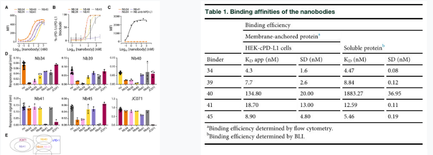 Fig 1:Characterization of anti-cPD-L1 nanobodiesTab 1:Binding affinities of the nanobodies