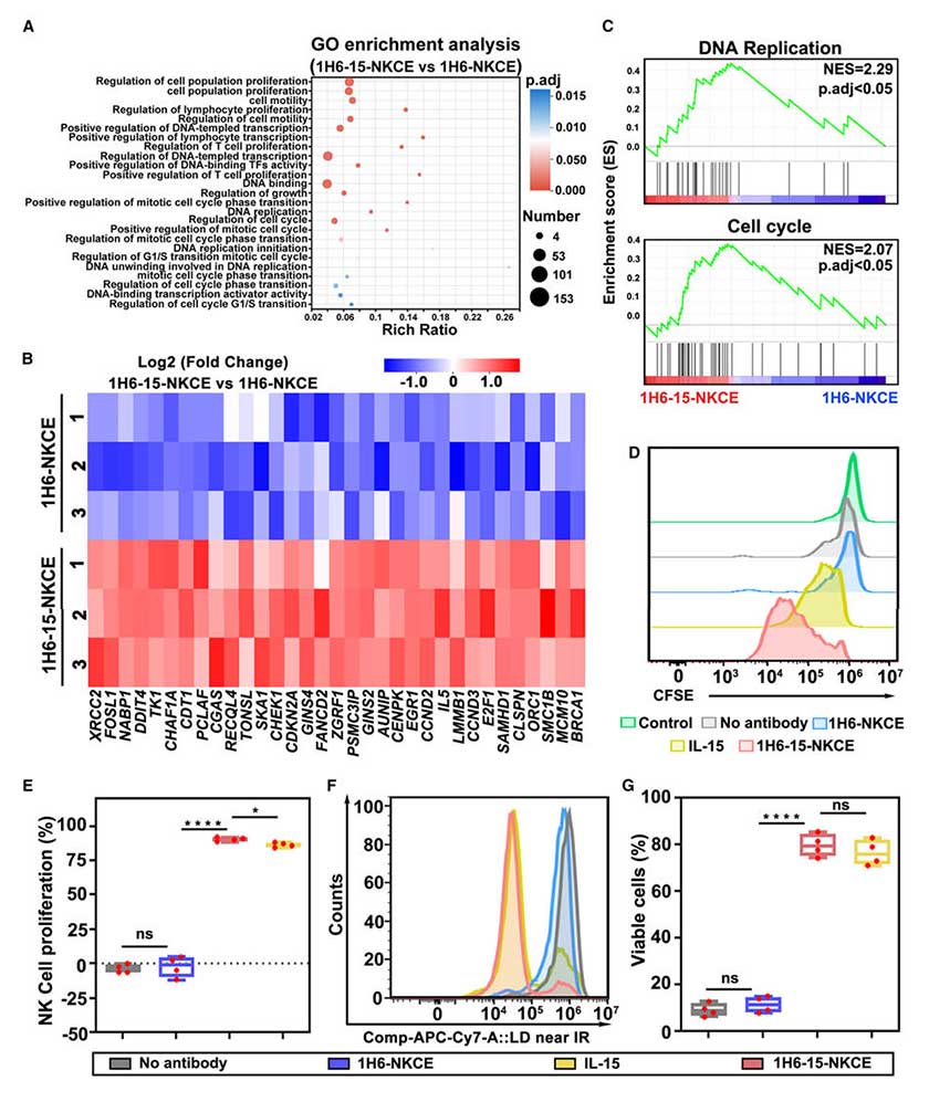 Figure 5. 1H6-15-NKCE induces potent NK cell survival and proliferation