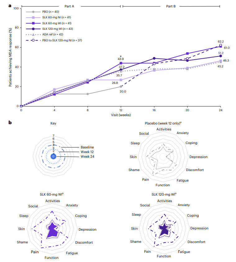 References:McInnes, I.B., Coates, L.C., Mease, P.J.et al.Sonelokimab, an IL-17A/IL-17F-inhibiting nanobody for active psoriatic arthritis: a randomized, placebo-controlled phase 2 trial.Nat Med(2025).https://doi.org/10.1038/s41591-025-03971-6