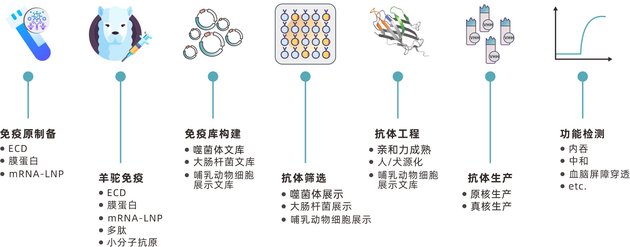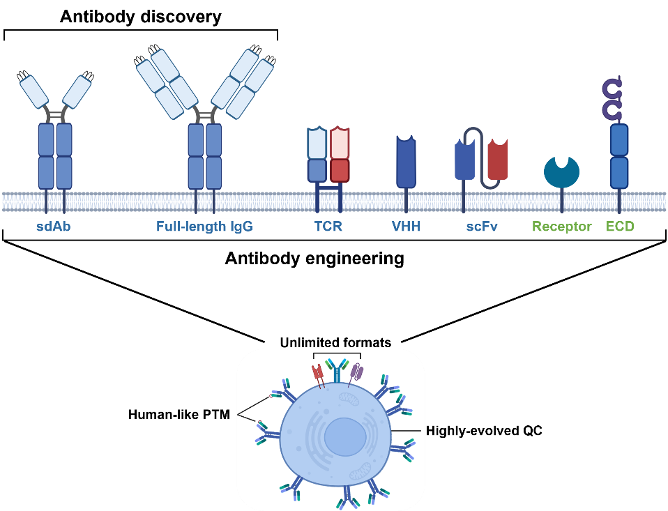 Nabo Life currently possesses a complete chain technology platform covering antibody development, antibody discovery, and antibody engineering. This platform includes screening platforms such as phage display, Escherichia coli display, and mammalian cell display, membrane protein preparation platforms such as VLP and Nanodisc, as well as mRNA preparation and immunization platforms. Through the cross-complementation of multiple platforms, it provides flexible antibody discovery and modification services for pharmaceutical companies and research institutions, assisting in the development of drugs and reagents.