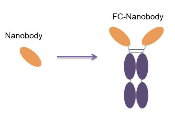 To address issues like steric hindrance caused by larger labeling molecules affecting antibody affinity, an FC fragment can be added to the nanobody. FC modification allows customization with human-FC, mouse-FC, rabbit-FC, etc., based on experimental requirements, providing versatility for different experiments.
