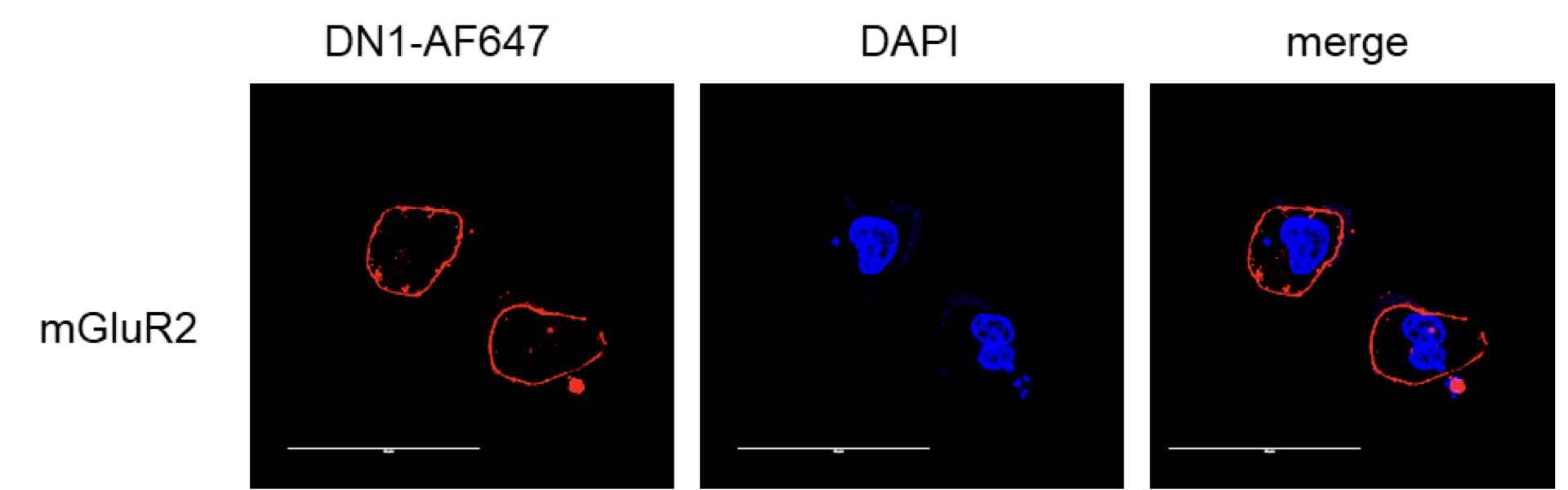 Nanobodies can also be labeled with fluorescent molecules such as AF488/AF647 for cellular imaging. For instance, the mGluR2