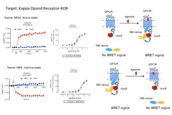 Nanobodies can be utilized in real-time monitoring of receptor activity using the BRET method. According to the information documented in related articles, by constructing corresponding functional plasmids and conducting tests, the obtained results align with those presented in the articles. Leveraging BRET technology, nanobodies enable the real-time assessment of receptor activity.